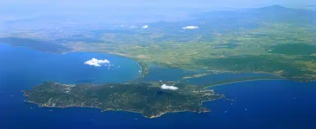 Il promontorio dell’Argentario è una delle zone più stupende d’Italia, era originariamente un’isola, che nel corso dei secoli si è venuta a trovare unita alla vicina terraferma, per il sollevamento prima del Tombolo della Feniglia e poi anche del Tombolo della Giannella, è circondato dal mare Tirreno, dalle due lagune, collegato ai due tomboli e ad un lungo ponte, che lo collega alla città di Orbetello.